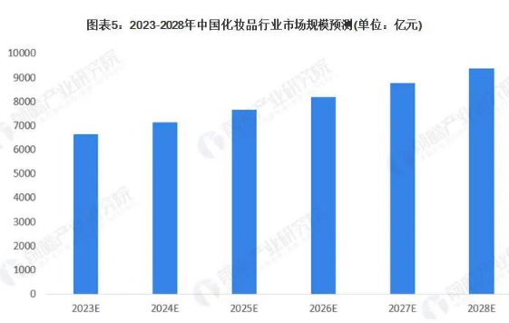 而且伴隨著我國經(jīng)濟(jì)的快速恢復(fù)和持續(xù)增長,我國已成為全球最具潛力的化妝品市場,未來,在即時性美容需求的推動下,以及對個性展現(xiàn)的追求,我國化妝品消費(fèi)市場將以快速度增長,前瞻預(yù)測到 2028 年我國化妝品市場規(guī)模將達(dá)到 9374 億元,2023-2028 年年均增長率將達(dá)到 7.11%。